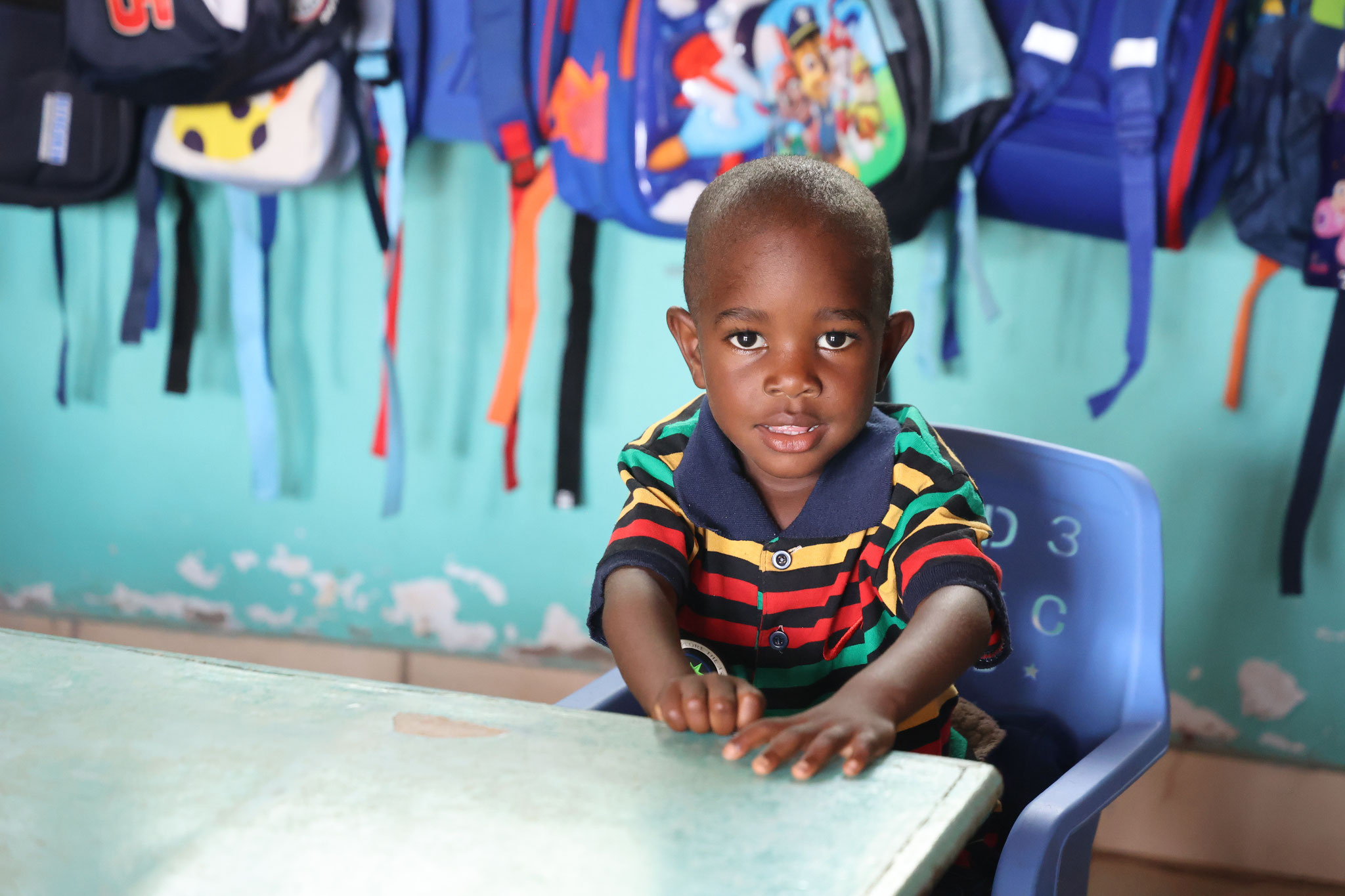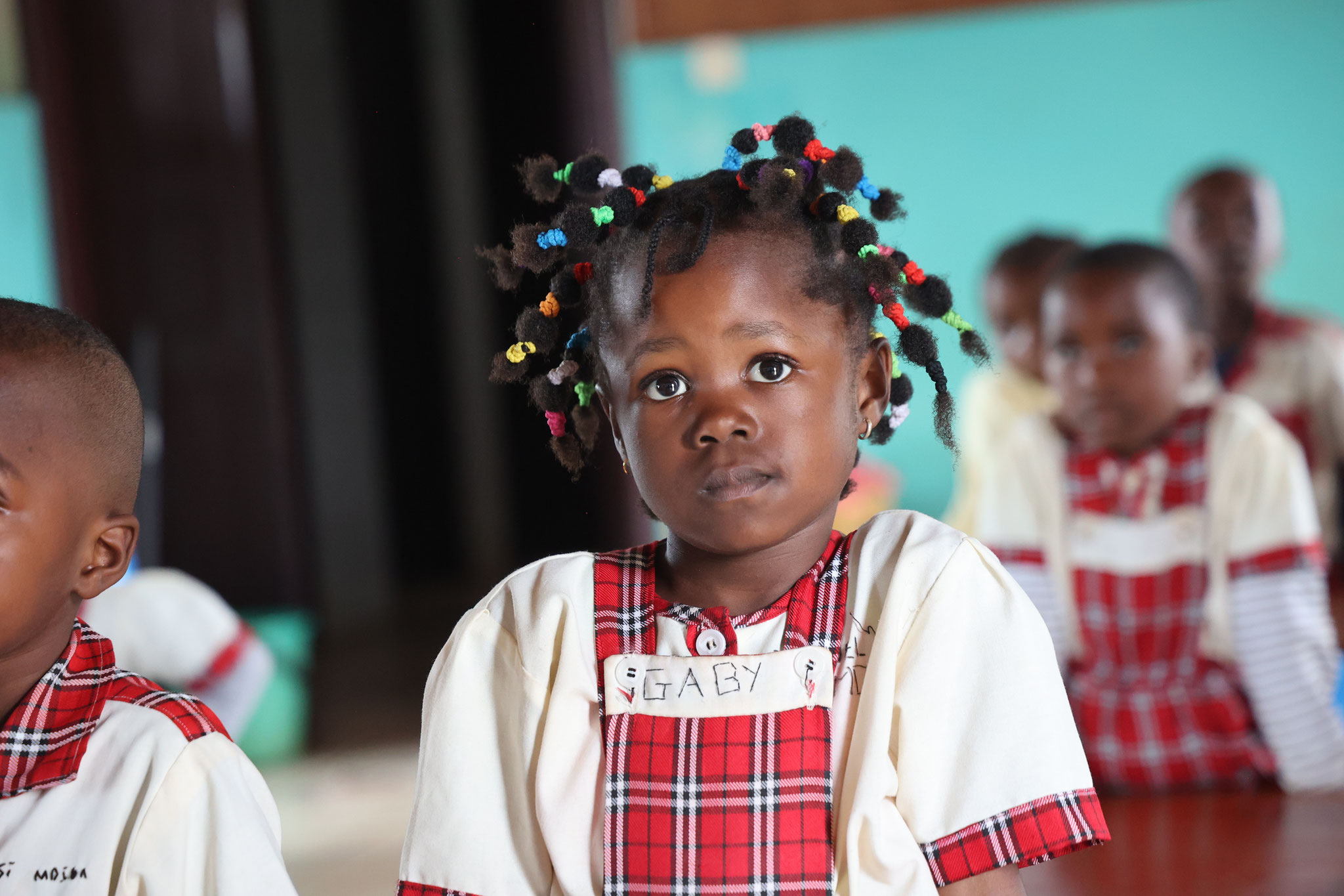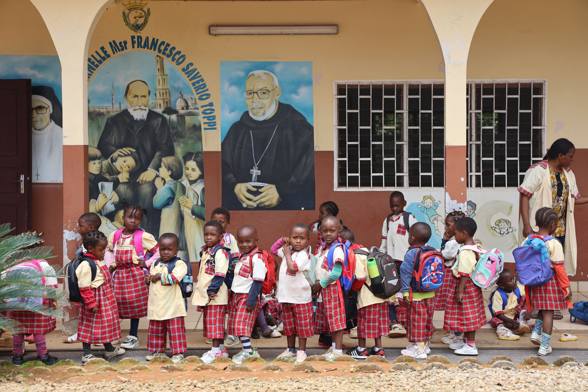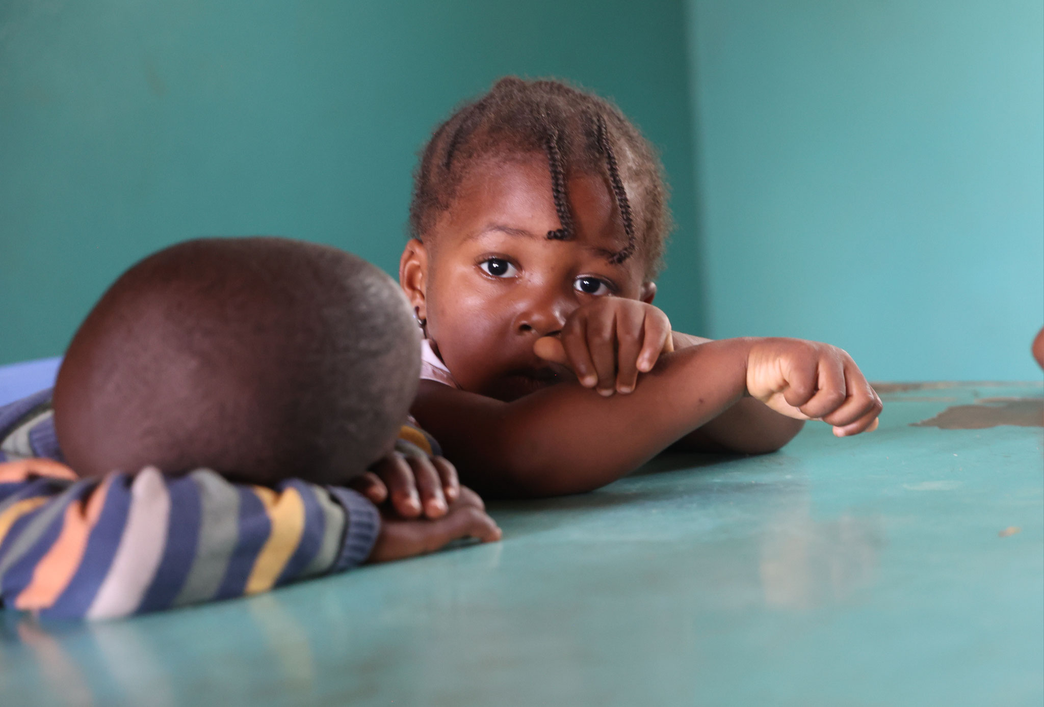 Quando entriamo nelle classi è l’ora del riposino: i piccoli dormono con la testa appoggiata al banco, qualcuno sbircia di sottecchi. Gabriel trascina uno zaino più grande di lui, ha un succo in una busta che morde con i denti e gli cola addosso. Suor Sabina lo asciuga con la dolcezza di una madre.