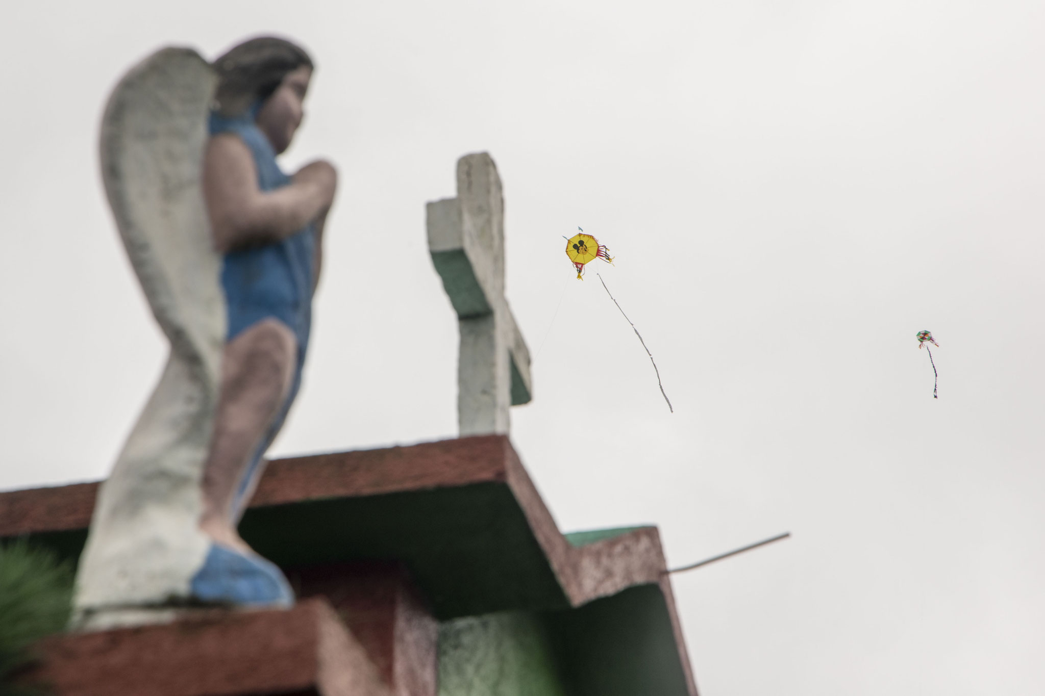 Il Cimitero di Sumpango è un continuo via vai di persone. Entro con la mia macchina fotografica in mano, con un leggero senso di timore, mi sembra di profanare qualcosa di sacro, di invadere l’intimità della morte. Ho la sensazione di essere un estraneo in un momento troppo personale. Ma basta poco per lasciarmi trasportare. Bambine sorridono mentre pitturano le tombe, un luogo che altrove sarebbe silenzioso e raccolto, ma che qui si trasforma in vita, in musica, in memoria, in festa. La canzone preferita del defunto risuona nell’aria, suonata con le marimbe. Strumenti, melodie struggenti, voci. Cammino tra i vicoletti, tra famiglie che mangiano sedute sulle tombe e bambini che corrono con gli aquiloni tra le mani.