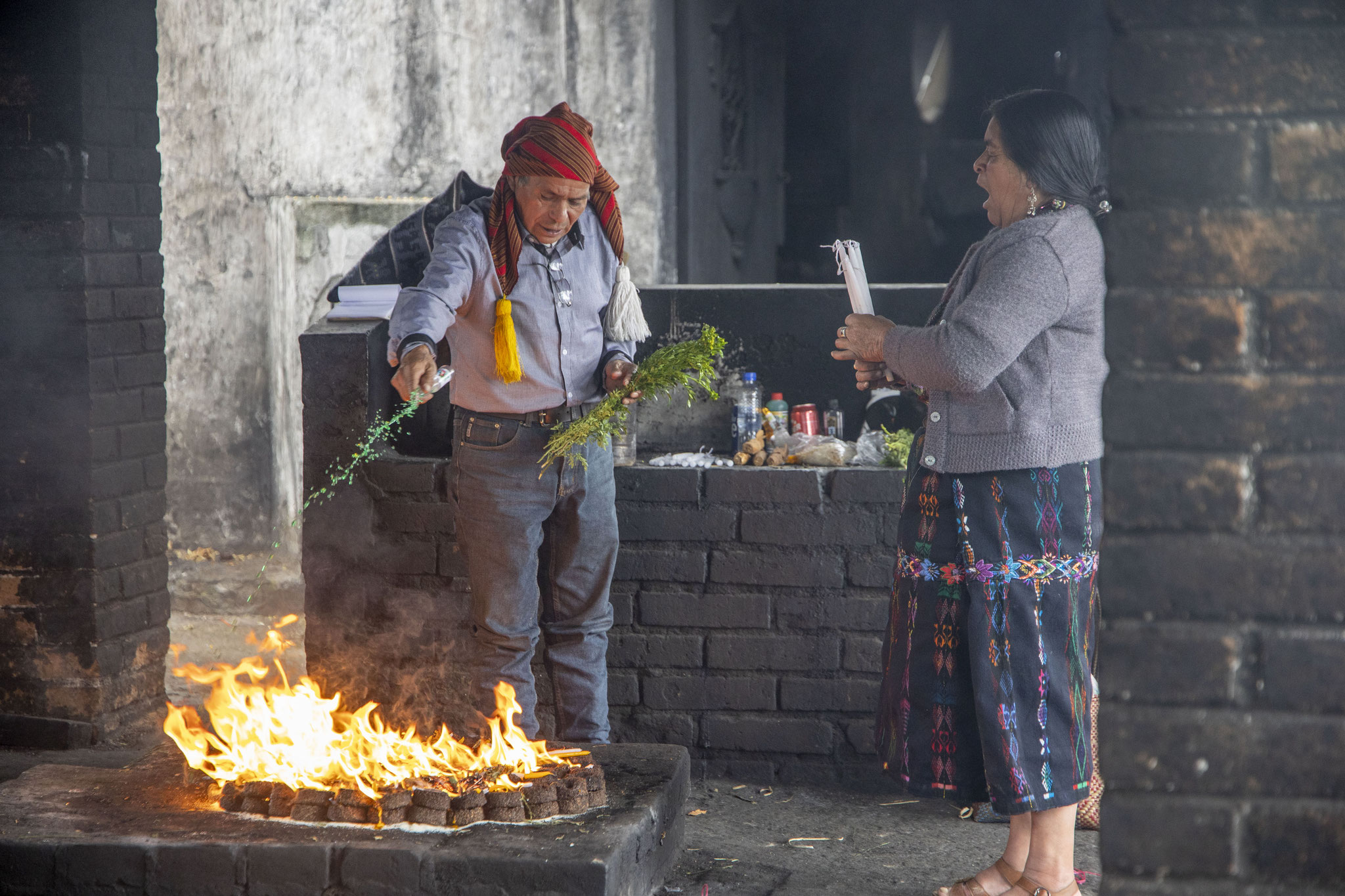 Le chiese di Santo Tomás e del Calvario dominano la piazza, diventano il cuore pulsante di un sincretismo religioso straordinario. Intorno, i banchetti colmi di frutta tropicale, erbe curative, fiori e manufatti artigianali compongono un mosaico vivace che richiama migliaia di indigeni da ogni angolo del paese. Sul sagrato, una sciamana, celebra un antico rito Maya, agitando un incensiere colmo di resina di copale, il cui profumo si mescola all’aroma dei rami di pino posizionati all’ingresso. Nel frattempo, fedeli cattolici si inginocchiano sul pavimento di pietra della chiesa, percorrendolo dall’uscio all’altare.