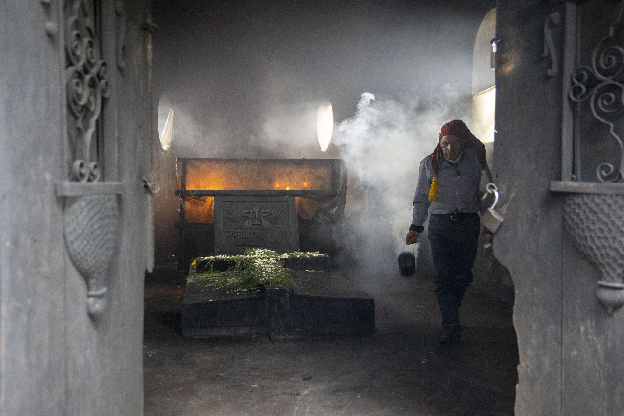 Una piccola cappella scura con doppie porte in ferro, che i custodi aprono di giorno per consentire ai curanderos di celebrare i loro riti. Dietro la tomba di Padre Ildefonso Rossbach, un tavolo colmo di incensi e candele. Il fumo avvolge tutto, le litanie riempiono l’aria. L’uomo viene purificato, mentre la curandera, che ha guidato il rituale dall’esterno, sbadiglia: il rito è compiuto.